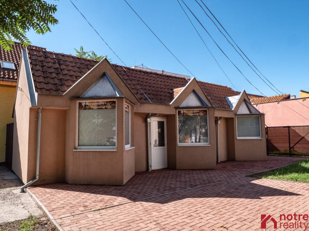 Nebytové priestory s pozemkom sú v úplnom centre mesta Lučenec. Na pozemku o výmere 400 m2 je postavená budova, ktorej montovaný skelet je zo železnej konštrukcie, a tvorí tri prepojené miestnosti so sociálnym zariadením. V súčasnosti je v priestoroch vybavenie s barovým pultom. Miestnosti sú deliteľné aj na tri samostatné miestnosti a sú napojené na elektriku, vodu, kanalizáciu. V prípade využitia len pozemku, je skelet ľahko demontovateľný.