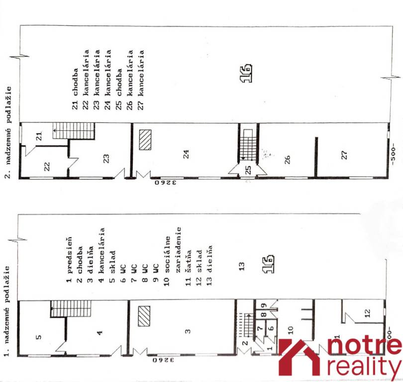 - s rozlohou 521 m2 zastavanosť , jedná sa o murovanú dvojpodlažnú budovu s 4mi samostatnými vstupmi do priestorov , ktoré môžu byť využité na administratívne, resp. prevádzkovo – obchodné / podnikateľské účely. Jeden samostatný vstup slúži do skladu.